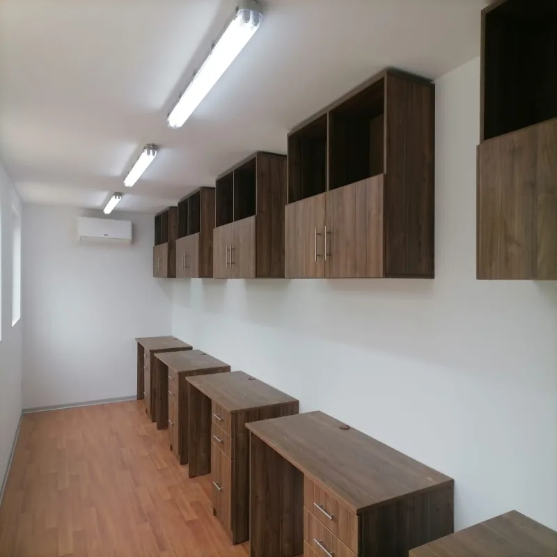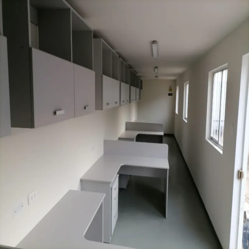 En Gestión Modular, complementamos nuestros módulos con mobiliario funcional y de alta calidad, diseñado para maximizar la comodidad y eficiencia de cada espacio. Fabricamos muebles a medida con acabados en acero inoxidable, melamina y otros materiales resistentes, ideales para oficinas, campamentos y proyectos modulares.